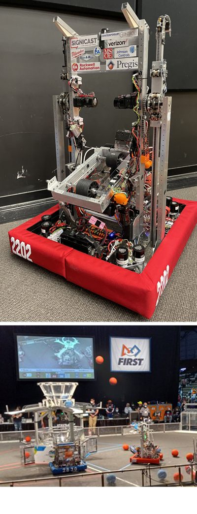 While basketball fans were watching the NCAA men's and women's regionals, there was another equally exciting regional occurring at the University of Wisconsin-Milwaukee Panther Arena. It was the FIRST Robotics Wisconsin Regional with 42 high school student teams participating. The students have six weeks to build a robot that meets the requirements for the competition. This year, robots needed to quickly gather cargo (over-sized tennis balls) and shoot the cargo into a hub. Points also could be scored if a robot could hang or traverse the rungs of a hangar (similar to monkey bars).