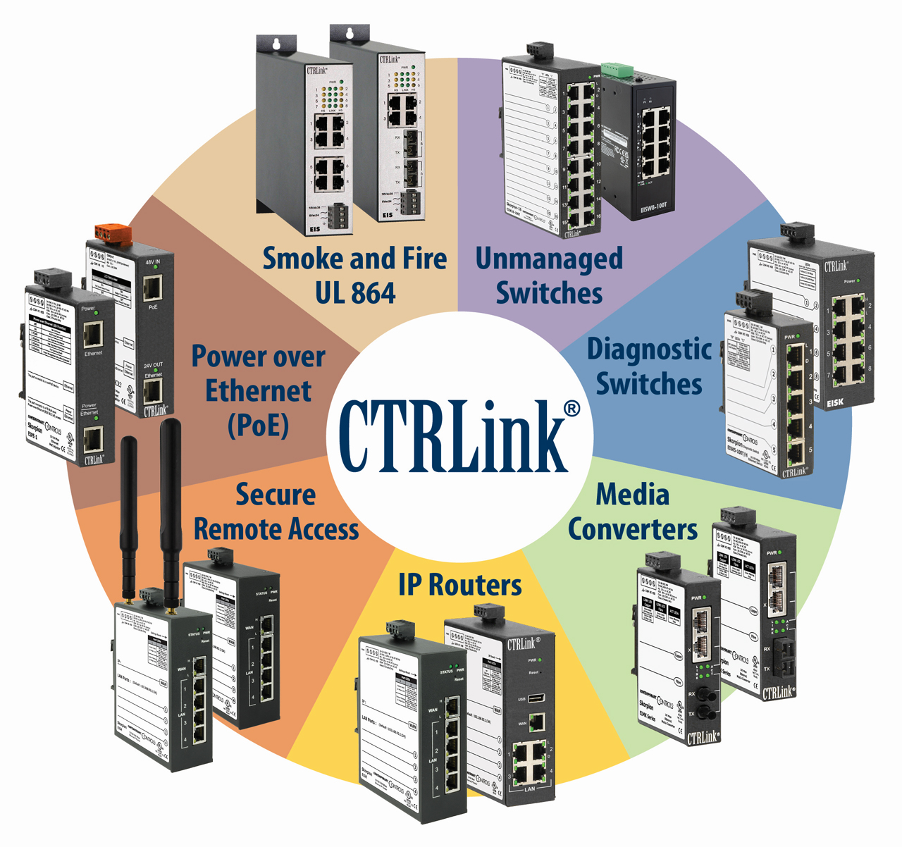 Whatever the Ethernet infrastructure need, a solution is available from CTRLink. For simple systems, plug-and-play unmanaged switches provide a cost-effective method for expanding Ethernet networks. If no fiber optic ports are available on equipment to be connected, a media converter will do the trick.
